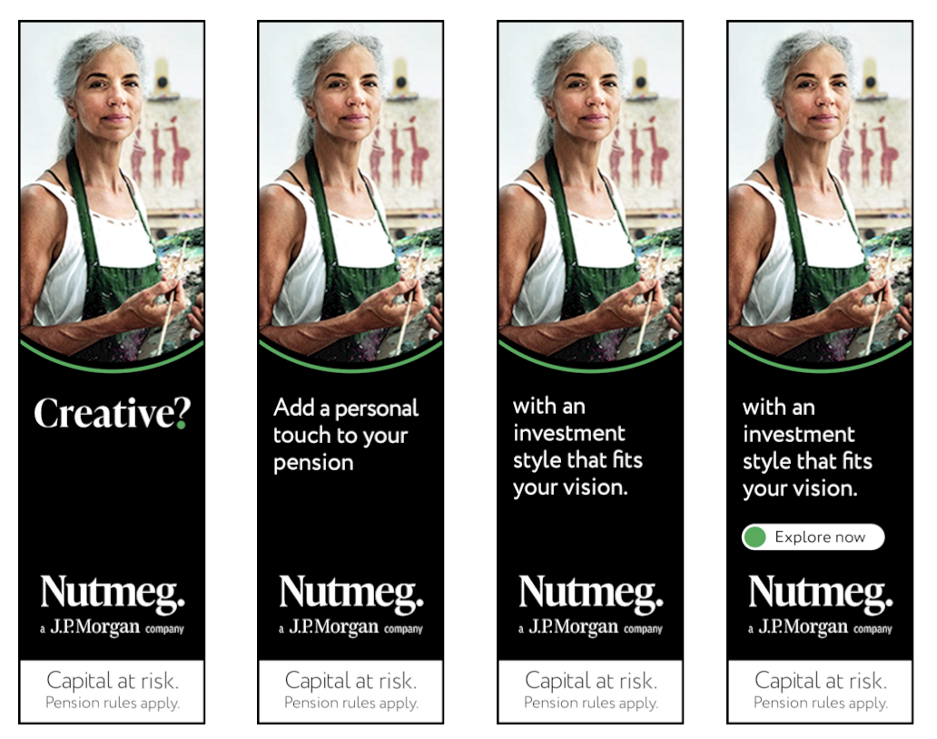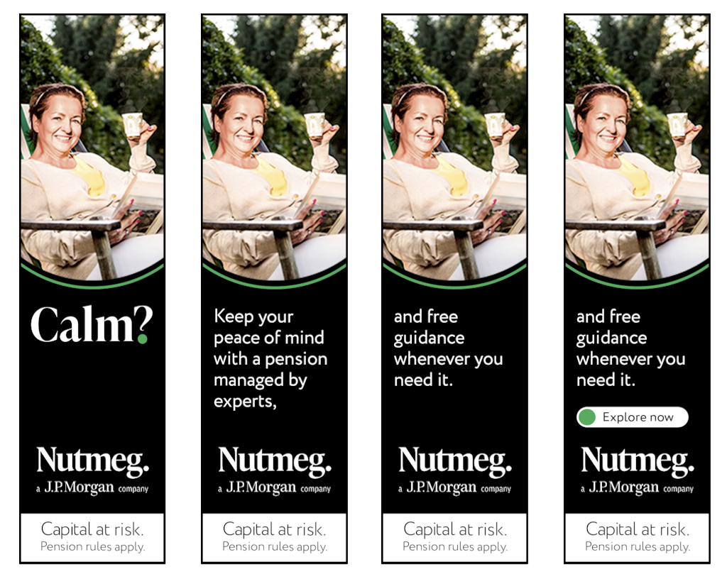 Thinking about your financial future feels scary and uncertain for a lot of people right now. So when it comes to your pension, it’s hard to think about that next step. But Nutmeg believes that what you have now is what you’ll value most in retirement, from your hobbies to your individual traits. Working alongside a creative team, I helped to craft copy for a 360 campaign (print, DOOH, OOH, display, social and radio) that would break down the barriers and resistance many people feel when planning for their future.